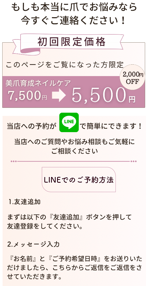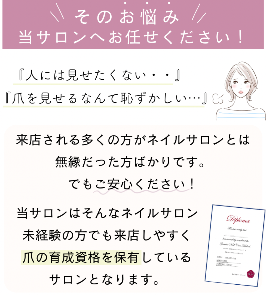 そんな時、ケアで爪の悩みが解消する育成技術がある事を知りすぐに学びにいきました。
